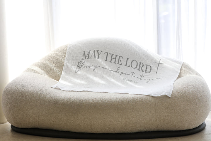 In The Beginning Boutique’s MAY THE LORD BLESS YOU AND PROTECT YOU swaddle has a high-end combination of style, elegance and meaning.